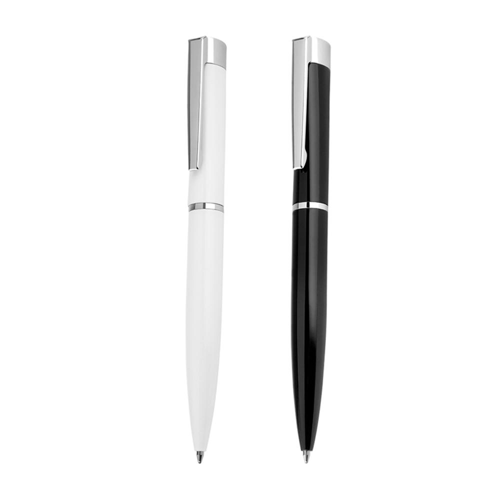 Caneta metálica com carga esferográfica azul e acionamento por clique. OBS.: PEDIDO APENAS MÚLTIPLO DE 100 PEÇAS!